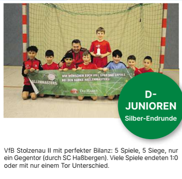 Die Harke Hallenmasters 2025 /2026 boten über Wochen hinweg Hallenfußball in allen Altersklassen – von der U10 bis zu den A-Junioren sowie bei den Juniorinnen von der E- bis zur B-Juniorinnen. Zahlreiche Vorrunden und Zwischenrunden führten zu stark besetzten Endrunden mit vielen knappen Entscheidungen. Das Turnier zeichnete sich außerdem durch mehrere Turniersieger ohne Punktverlust aus. Die Veranstalter freuten sich zudem über beeindruckende Offensivwerte (Wechold 17:3 bei den E-Junioren Bronze, Marklohe 24:0 bei den D-Juniorinnen), Fairness und den sportlichen Zusammenhalt. Über alle Altersklassen hinweg zeigte sich: Die Hallenmasters sind sportlich anspruchsvoll, organisatorisch aufwendig – und für viele Teams ein Höhepunkt der Wintersaison. Nachfolgend der Gesamtüberblick – getrennt nach Junioren und Juniorinnen.